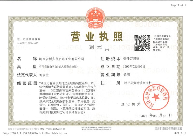 河南省新鄉(xiāng)市啟東工業(yè)有限公司始建于1987年,是專注研發(fā)、生產(chǎn)自動(dòng)化儀器儀表(主要與壓力容器、鍋爐等容器配套使用)的廠家。主要產(chǎn)品有液位計(jì)(磁敏雙色型、磁翻柱型等)系列、烤包器熄火聯(lián)控裝置系列、壓力容器快開門安全聯(lián)鎖保護(hù)裝置系列、鍋爐報(bào)警器系列。二十多年來,公司產(chǎn)品暢銷國內(nèi)并遠(yuǎn)銷俄羅斯、蒙古與東南亞,深得廣大用戶的信賴和好評(píng)。我們多年來致力于自動(dòng)化儀器儀表的研制生產(chǎn),公司現(xiàn)具有完善的生產(chǎn)、試驗(yàn)、檢測手段和設(shè)備。科技創(chuàng)新、誠信服務(wù),是我們不變的經(jīng)營理念,我們將以強(qiáng)有力的技術(shù)支持及售后竭誠為客戶提供良好的服務(wù)。  2012年我公司成功研發(fā)了KCL系列烤包器熄火聯(lián)控裝置,并于2013年2月2日榮獲中華人民共和國國家知識(shí)產(chǎn)權(quán)局辦法的《實(shí)用新型**證書》<**號(hào):2021202257735>該產(chǎn)品廣泛應(yīng)用于唐鋼等大型鋼鐵企業(yè),為烤包器安全作業(yè)提供了有力的保障。  2002年我公司成功研發(fā)磁敏電子雙色液位計(jì)獨(dú)特的高亮度LED紅綠雙色顯示,獲得了專家的首肯和用戶的一致好評(píng)。在此基礎(chǔ)上我公司研發(fā)人員十年磨一劍,致力于XQFB-1防爆型磁敏雙色液位計(jì)的研發(fā),于2013年12月27日由國家防爆電器產(chǎn)品質(zhì)量監(jiān)督檢驗(yàn)中心檢驗(yàn)合格并頒發(fā)防爆合格證書<編號(hào):cnex19.0883>。該產(chǎn)品性能得到了充分的發(fā)揮,廣泛應(yīng)用于含有Ⅱ類A·B級(jí)T1-T4組可燃?xì)怏w或蒸汽與空氣混合形成的爆炸性混合物的0區(qū)、1區(qū)危險(xiǎn)場所。連接用戶DCS或PLC系統(tǒng)實(shí)現(xiàn)遠(yuǎn)距離集中顯示和控制,從而實(shí)現(xiàn)節(jié)能、數(shù)字化管理。為用戶增加了一定的經(jīng)濟(jì)效益和社會(huì)效益,。2014年公司成功申請(qǐng)了夢潤儀表的logo,新的品牌新的形象,夢潤儀表是啟東的LOGO, 歡迎新老用戶前來洽談合作。  我們一如既往地注重科研的投入,憑借產(chǎn)品的不斷更新、加大科技含量,進(jìn)一步拓展市場。我們相信品質(zhì)成就未來,以過硬質(zhì)量、優(yōu)惠價(jià)格、完善的售后服務(wù)熱忱歡迎廣大客戶來我司視察指導(dǎo)、洽談業(yè)務(wù);精誠合作,共創(chuàng)輝煌!